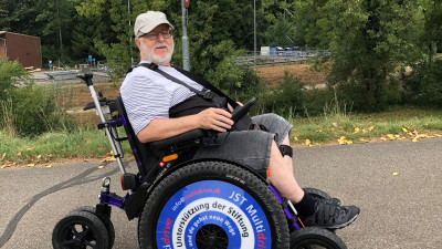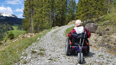 Im Herbst 2017 prüfte das Schicksal die Lebenskraft von Thomas Merz. Ein Blutgefäss in seinem Hirnschädel platzte und schädigte Teile seiner Hirnregionen. Thomas ist seither einseitig gelähmt. Nach drei Monaten Reha-Aufenthalt und der Unterstützung seiner Familie begann er sein Leben im Rollstuhl zu akzeptieren. Thomas lässt sich von seiner Beeinträchtigung nicht entmutigen. Zur richtigen Zeit traf er Hildegard Hochstrasser von Jakobsweg Schweiz und kam so seinem Wunsch, einst wieder wandern zu können, ein grosses Stück näher.