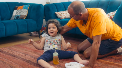 Die vierjährige Kim juchzt fröhlich, als ihre Mama ihr einen Kuss auf die Wange drückt. Ihr Papa hält daneben ihr zappeliges Händchen. Auf den ersten Blick deutet wenig auf die enormen Belastungen hin, die ihre Eltern im Alltag schultern. Kim kam mit schweren Behinderungen zur Welt und ist rund um die Uhr auf Betreuung angewiesen. Umso dankbarer sind sie für die Hilfe durch den Entlastungsdienst.