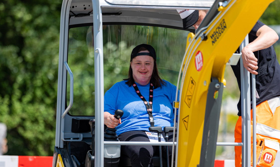 Uelis Hände umklammern die Joysticks im Bagger, während er mit geschickten Bewegungen Steine schaufelt und die Welt um sich herum vergisst. Heute durchbricht er für einmal jedes Hindernis, das ihm im Wege steht. Unter fachkundiger Anleitung durch die Lernenden der Marti AG übernehmen Menschen mit Behinderungen für einen Tag diese Baustelle.