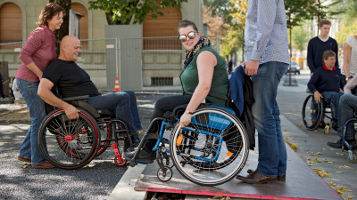 Finden Sie blind den Weg zur Arbeit? Könnten Sie im Rollstuhl eine Rampe bewältigen? Oft erkennen Menschen ohne Behinderungen Hindernisse und Barrieren nicht auf den ersten Blick. Dank des Workshops «Perspektivenwechsel» von Sensability können Sie Ihre Sichtweise ändern und selbst erfahren, wie es sich mit Rollstuhl oder Blindenstock bewegen lässt.