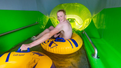 Auf der Wasserrutschbahn ist der 18-jährige Ben in seinem Element. In einem regulären Schwimmkurs wäre er längst ausgebremst worden – zu wenig Spielraum für individuelle Bedürfnisse. Doch in der Schwimmwoche von insieme darf Ben entscheiden, was Ferien für ihn bedeuten. Für ihn heisst das: den ganzen Tag rutschen.