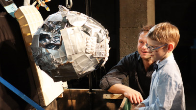 Die Figur Herr Käseweis im Theaterstück «Nichts oder Herr Käseweis fliegt zum Mond» mag keine lauten und wilden Umgebungen. Genauso geht es auch dem 7-jährigen Jacob. Aufgrund seiner Sehbehinderung kompensiert er vieles über das Gehör. Zusammen mit seiner Familie hat er das Theaterstück besucht, das eigens für ihn zugänglich gemacht wurde.